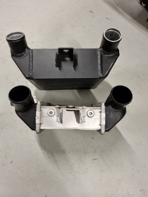 Stor intercooler som passer alle Skidoo/Lynx 900 turbo modeller. Ved hjelp av logging av motordata har vi sett at innsugstemperaturen fort blir veldig høy særlig ved høyere laddetrykk og aggresive kjøring. Denne store intercooleren er betydelig mer effektiv til å senke innsugstemperaturen som igjen gir mer effekt og mindre belastning på motoren. Intercooleren passer i std fester som plasserer den lengst mulig unna rødglødende turbo og manifold for å minimere strålevarme som ellers kan varme opp en effektiv intercooler og dermed i stor grad minimere dens effektivitet.